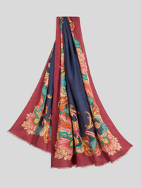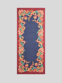 Scarf embellished with tonal floral jacquard motif framed by multicoloured floral print. This accessory, presented at the Spring-Summer 25 Women's Runway Show, is finished with contrasting edges, slightly fringed short sides and the ETRO logo in the corner. • Size: 27.6 x 66.9 inches (70 x 170 cm) • Made in Italy PRODUCT DETAILS • 53% cotton, 47% modal
