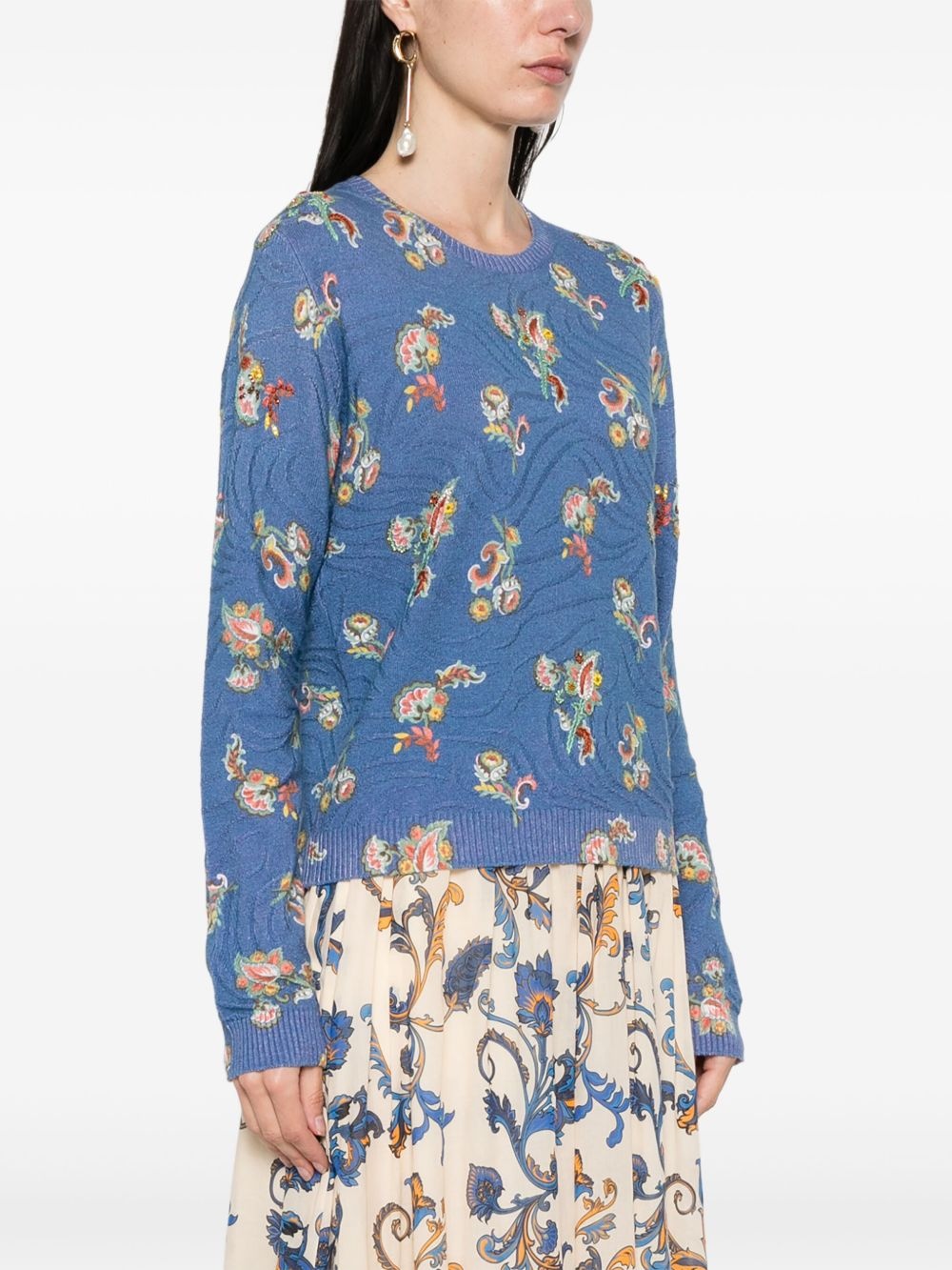 floral-jacquard top Highlights - Cerulean blue - Ribbed cuffs and hem - Sequin embellishment - Crew neck Made in Italy Composition Wool 50%, Cotton 50% SIZE & FIT Model measurements Height 5 ft 10 in(1.78 m) Bust/Chest 33.46 in(85 cm) Hips 36.22 in(92 cm) Waist 23.22 in(59 cm) FittingInformation Designed for a relaxed fit, this piece allows for comfort and movement when worn Made with a midweight knit, this piece offers some stretch