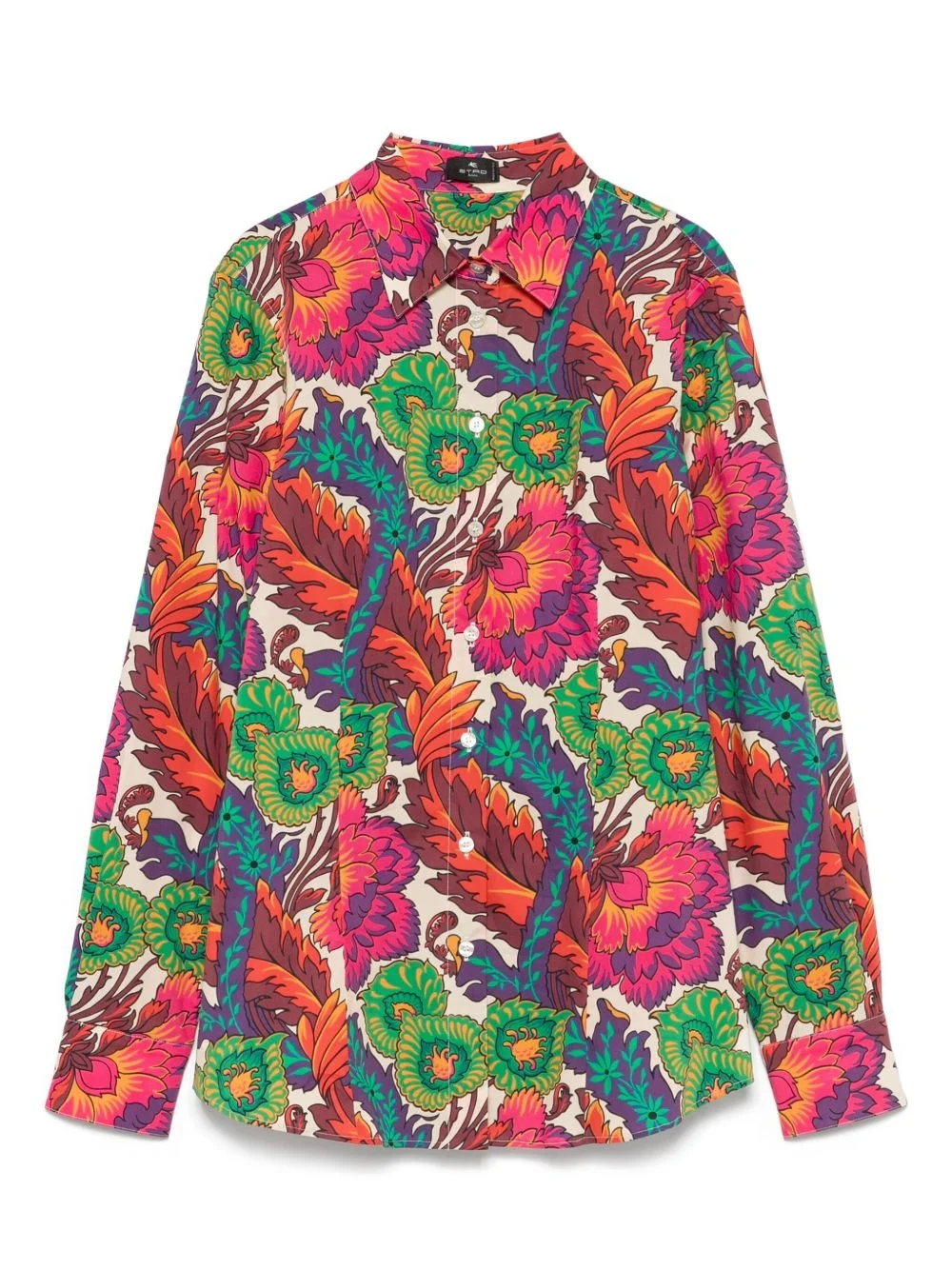floral-print shirt Highlights - Flame red - Front button placket - Buttoned cuffs - Dart detailing - Classic collar Made in Italy Composition Cotton 97%, Spandex/Elastane 3% SIZE & FIT Model measurements Height 5 ft 10 in(1.78 m) Bust/Chest 32.67 in(83 cm) Hips 35.43 in(90 cm) Waist 23.22 in(59 cm) FittingInformation Designed for a slim fit that sits just away from the body offering a close yet comfortable fit The dart stitching adds structure and a closer fit in the torso of this piece Made from a midweight stretch fabric, this piece offers elasticity and flexibility when worn