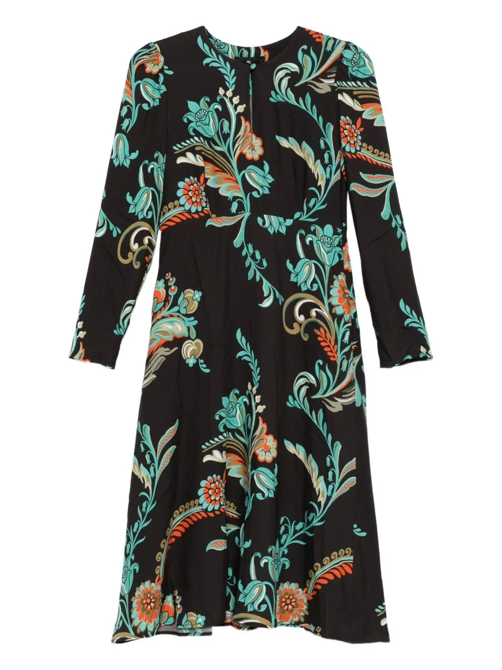 floral-print long-sleeve dress Highlights - Black - Floral print - Long sleeves - Keyhole neckline - A-line skirt - Three-quarter sleeves Made in Italy Composition Viscose 100% SIZE & FIT Model measurements Height 5 ft 9 in(1.75 m) Bust/Chest 34.64 in(88 cm) Hips 36.61 in(93 cm) Waist 26.37 in(67 cm) Washing instructions Dry Clean Only