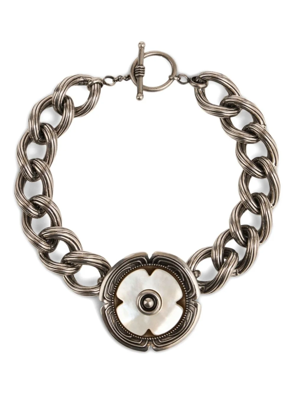 floral-motif necklace Highlights - Silver-tone - Toggle fastening - Chain bracelet - Mother-of-pearl Made in Italy SIZE & FIT Measurement Length when open 15.74 in(40 cm)