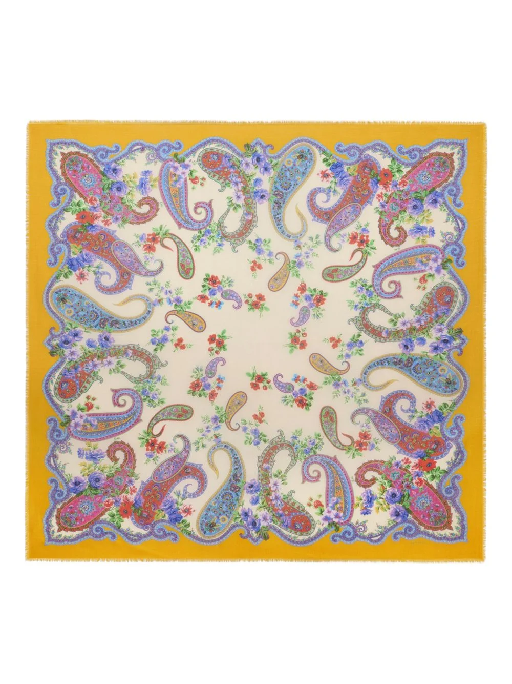 floral-paisley shawl Highlights - Yellow - Floral and paisley print - Fringed edge Made in Italy Composition Wool 34%, Cashmere 33%, Silk 33% SIZE & FIT Measurement LENGTH 55.11 in(140 cm) WIDTH 55.11 in(140 cm) Washing instructions Read Manufacturer Guidelines