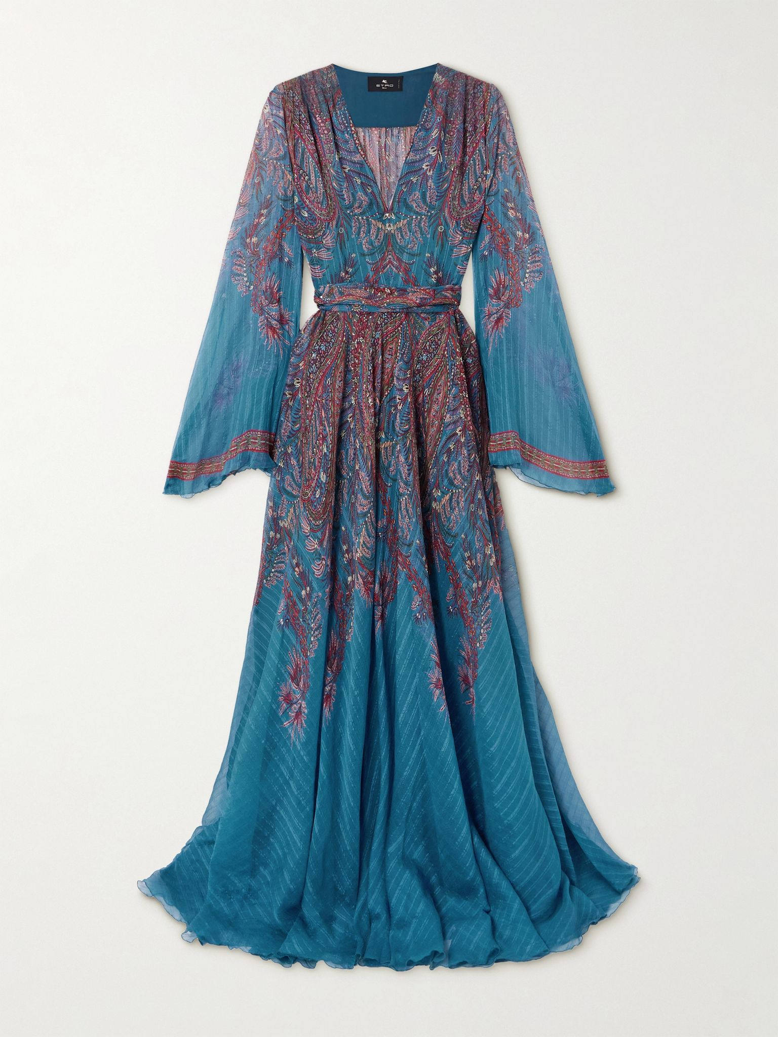 Etro's dress exudes bohemian glamour. It's been made in Italy from silk-crepon that's printed with paisley motifs reminiscent of peacock feathers. The billowy sleeves are left unlined, revealing a subtle amount of skin, while the self-tie belt cinches the flowy shape. Size & Fit - Fits true to size, take your normal size - Designed for a slightly loose fit, use the tie belt to cinch in at the waist - Lightweight, fluid, non-stretchy fabric - Model is 175cm/ 5'9" and is wearing an IT 40 Model measurements: - Bust: 85cm/ 33.5” - Waist: 63cm/ 25” - Hip: 90cm/ 35.5” Details & Care - Multicolored silk-crepon - Slips on - 100% silk; lining: 100% polyester - Fully lined - Dry clean