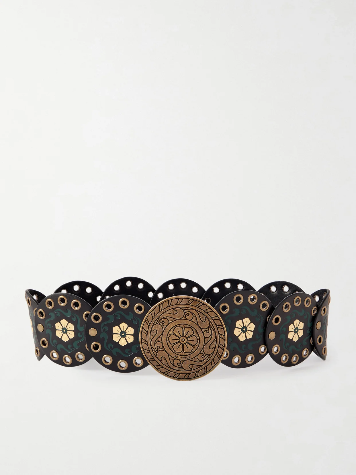 Etro's belt riffs on resurgent '00s trends, so you can take your styling cue from that era. Crafted from linked circles of supple leather, it's embellished with metallic eyelets and fixed in place with a brass buckle. Use yours to cinch dresses, sweaters or coats.