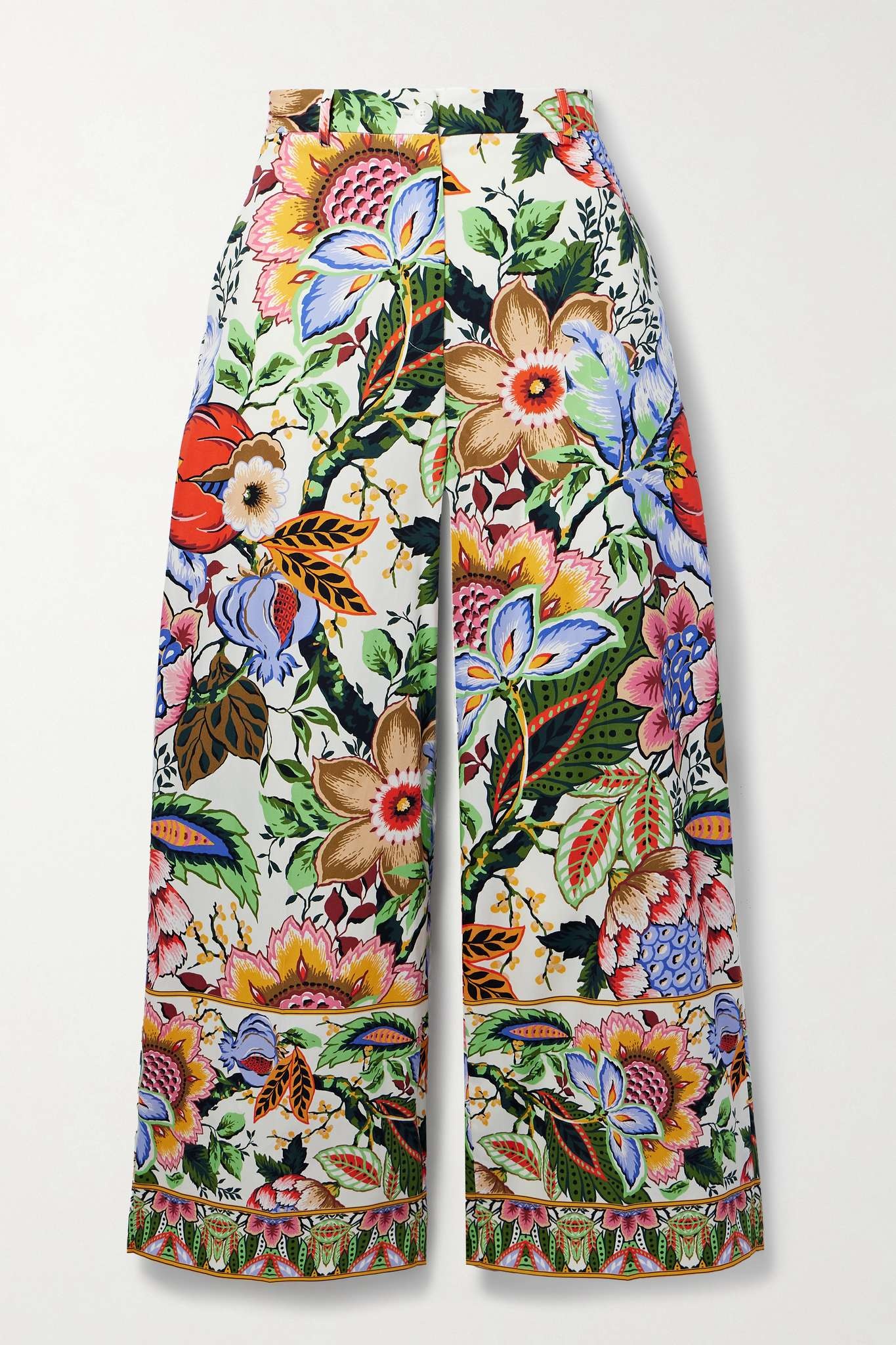 EDITORS'NOTES Etro's pants are decorated with a vibrant, bouquet-inspired floral print. Cut from cotton-poplin, they sit high on the waist and have wide legs that fall to cropped cuffs. Wear them with the matching blouse for the most impact. SIZE & FIT - Fits true to size, take your normal size - High-rise, cut for a wide-leg fit - Cropped length - Lightweight, non-stretchy fabric - Model is 175cm/ 5'9" and is wearing an IT 40 DETAILS & CARE - Multicolored cotton-poplin - Button and concealed zip fastening at front - 100% cotton - Dry clean