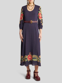 Crepe de chine midi dress with decorative, placed floral print. PRODUCT DETAILS • 100% viscose • Lining: 100% polyester