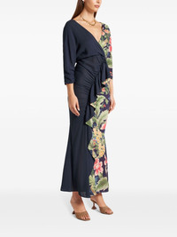 floral-print dress Highlights - Navy blue/multicolour - All-over floral print - Concealed rear zip fastening - V-neck - Half-length sleeves - Draped detailing - Ruffled detailing - Mermaid silhouette - Asymmetric hem - Long length Made in Italy Composition Viscose 97%, Elastane 3%