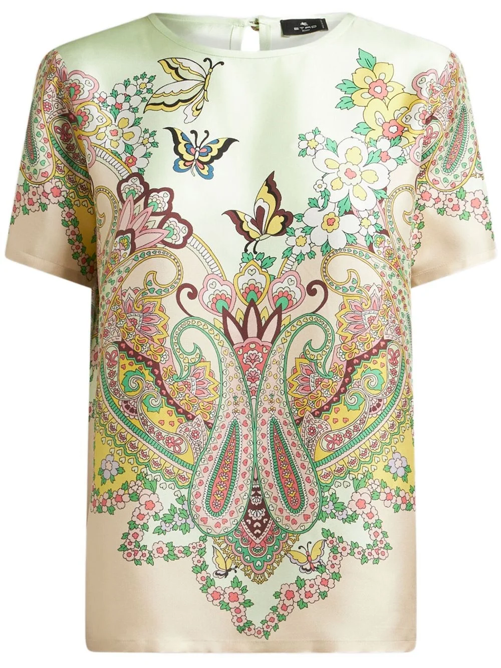 printed t-shirt Highlights - White - Rear button fastening - Crew neck - Paisley print - Short sleeves Made in Italy Composition Silk 100%