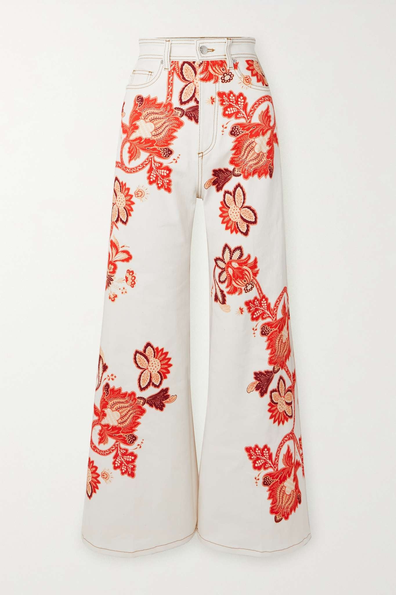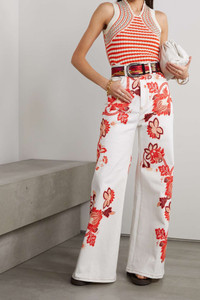 - White and tonal-orange denim - Button and concealed zip fastening at front - 98% cotton, 2% elastane - Machine wash