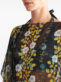 floral-print kaftan minidress Floral motifs and vivid colours are rooted in ETRO's SS24, to which this minidress belongs. Nodding to the collection, the kaftan silhouette is covered with the seasonal print in a multicoloured palette. Highlights - Black/multicolour - Georgette - All-over floral print - Boat neck - Wide sleeves - Kaftan silhouette - Rear lace-up fastening - Asymmetric hem - Above-knee length Composition Polyester 100% SIZE & FIT Measurement Length 33.5 in(85 cm) WAIST 33.9 in(86 cm)