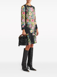 floral-print long-sleeve minidress Highlights - Black/multicolour - All-over floral print - Round neck - Long sleeves - Flared skirt - Concealed rear zip fastening - Straight hem Composition Outer: Viscose 95%, Spandex/Elastane 5% Lining: Viscose 100%