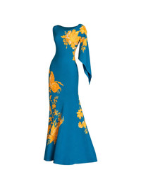 floral-print maxi dress Highlights - Blue and multicolour - Floral print - One-shoulder - Single sleeve - Floor-length - Fitted design Imported Composition Fabric 100% Washing instructions Read Manufacturer Guidelines