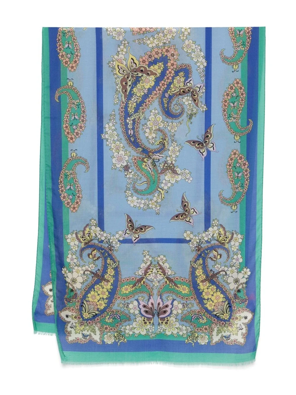 floral-print scarf Highlights - Cornflower blue - Contrasting border - Stripe detailing - Square shape Made in Italy Composition Cashmere 40%, Silk 30%, Wool 30% SIZE & FIT Measurement LENGTH 78.74 in(200 cm) WIDTH 27.55 in(70 cm)