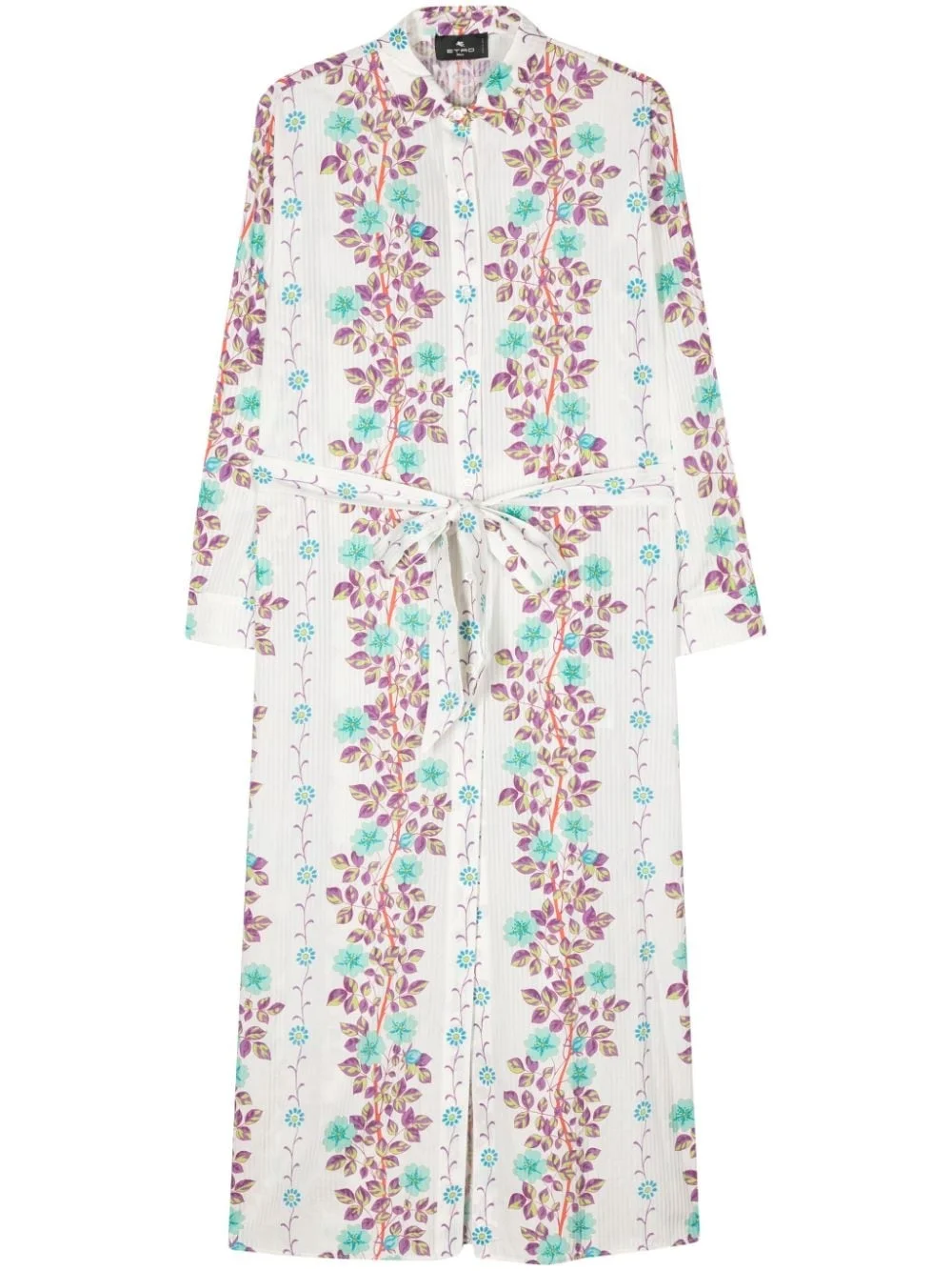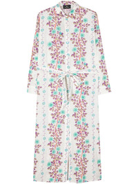 floral-print shirtdress ETRO is known for its vibrant colours and head-turning patterns and this shirtdress is a prime example. It's cut in Italy from a white cotton-silk blend and adorned with an all-over floral vine print in pink and turquoise hues. Highlights - White/multicolour - Cotton-silk blend - All-over floral print - Spread collar - Front button placket - Long sleeves - Tied waist - Straight hem Made in Italy Composition Cotton 82%, Silk 18% Washing instructions Machine Wash
