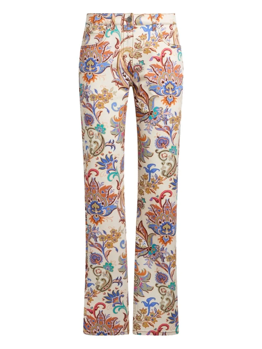 floral-print straight jeans Highlights - Ecru - Concealed fly and button fastening - Belt loops - Classic five pockets - Logo patch to the rear Made in Italy Composition Fabric 100%