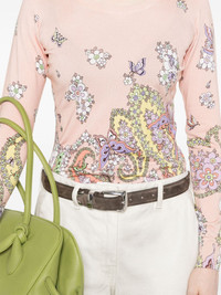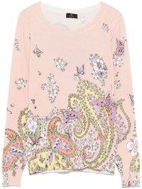 floral-print sweater Highlights - Peach pink - Crew neck - Long sleeves - Ribbed cuffs and hem Made in Italy Composition Silk 85%, Polyamide 9%, Elastane 6% SIZE & FIT Model measurements Height 5 ft 9 in(1.75 m) Bust/Chest 34.64 in(88 cm) Hips 36.61 in(93 cm) Waist 26.37 in(67 cm) FittingInformation Designed for a close fit throughout Made from a midweight stretch fabric, this piece offers elasticity and flexibility when worn
