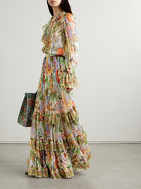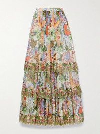 Etro's maxi skirt is designed to be worn with the coordinating blouse, but it'll look just as good pared back with a tonal tank. Cut from silk-crepon that's printed with a romantic floral motif, it has a whimsical tiered silhouette that features distinct pleats and gathers for added texture.