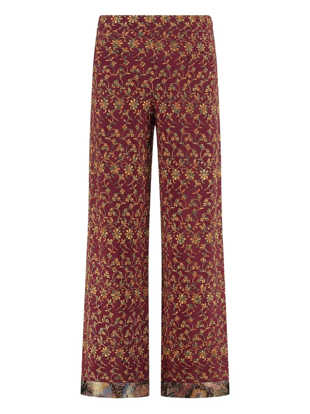 floral-print trousers Highlights - Dark red - Floral pattern - Gold-tone detailing - High waist - Paisley-patterned cuffs Made in Italy Composition Acetate 60%, Silk 40% Washing instructions Read Manufacturer Guidelines