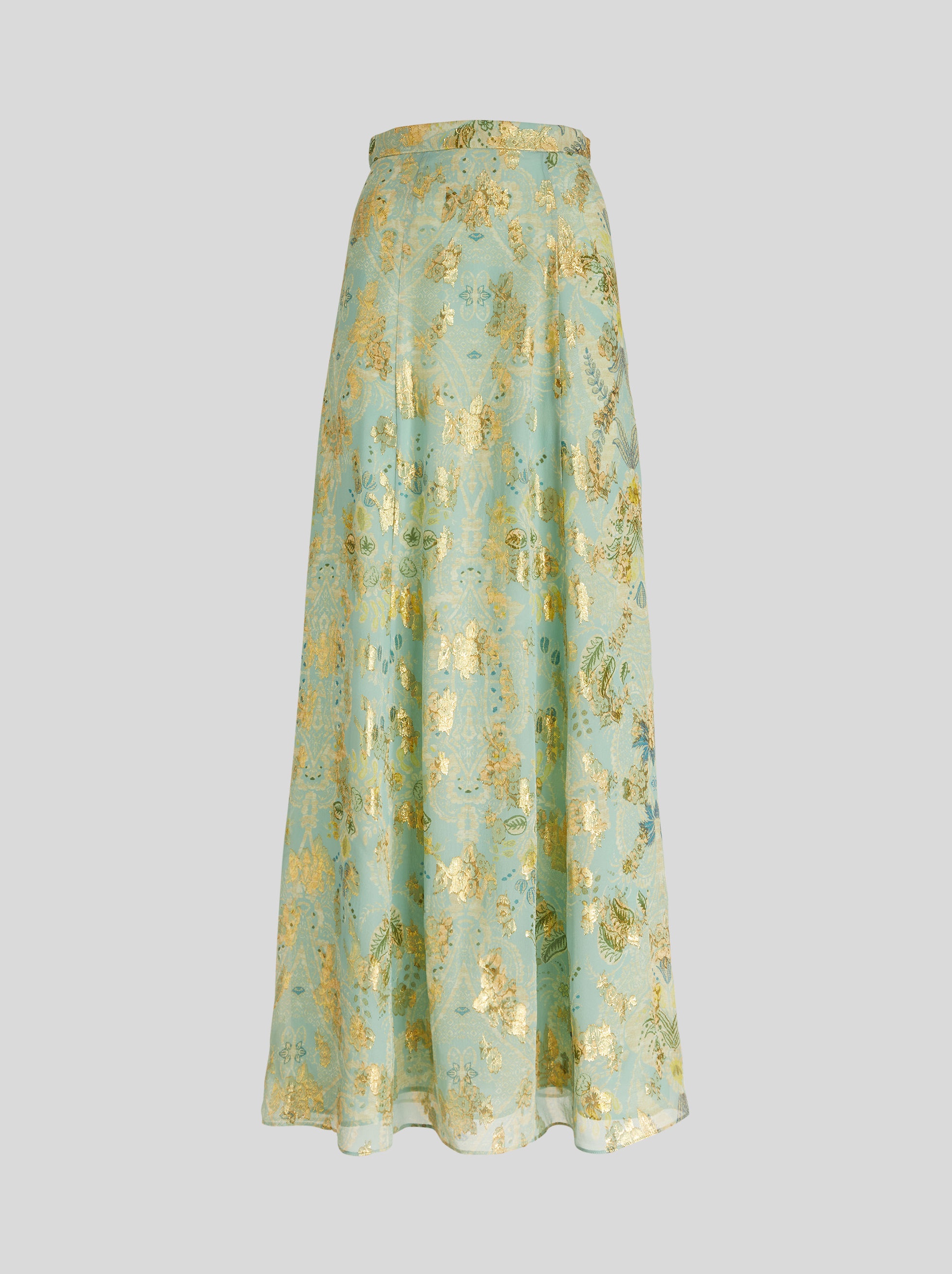 Long silk georgette skirt with a floral print embellished by lurex yarn. PRODUCT DETAILS • 100% silk • Ornament: 100% metallic fibre • Lining: 100% silk • Regular fit • Hidden rear zip fastening • Made in Italy • The model is 178 cm tall and wears size 40 Sku: 222D1925250050250