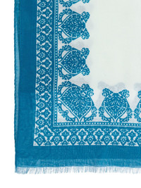 fringed patterned scarf Highlights - White and blue - Patterned - Fringed trim - Border detail - Cotton blend Made in Italy Composition Cotton 53%, Modal 47% SIZE & FIT Measurement LENGTH 55.11 in(140 cm) WIDTH 17.32 in(44 cm)
