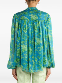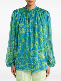 gathering floral top Highlights - Turquoise and green - Floral print - Gathered detailing - Button fastening - Long sleeves - Buttoned cuffs Made in Italy Composition Silk 100% Washing instructions Read Manufacturer Guidelines