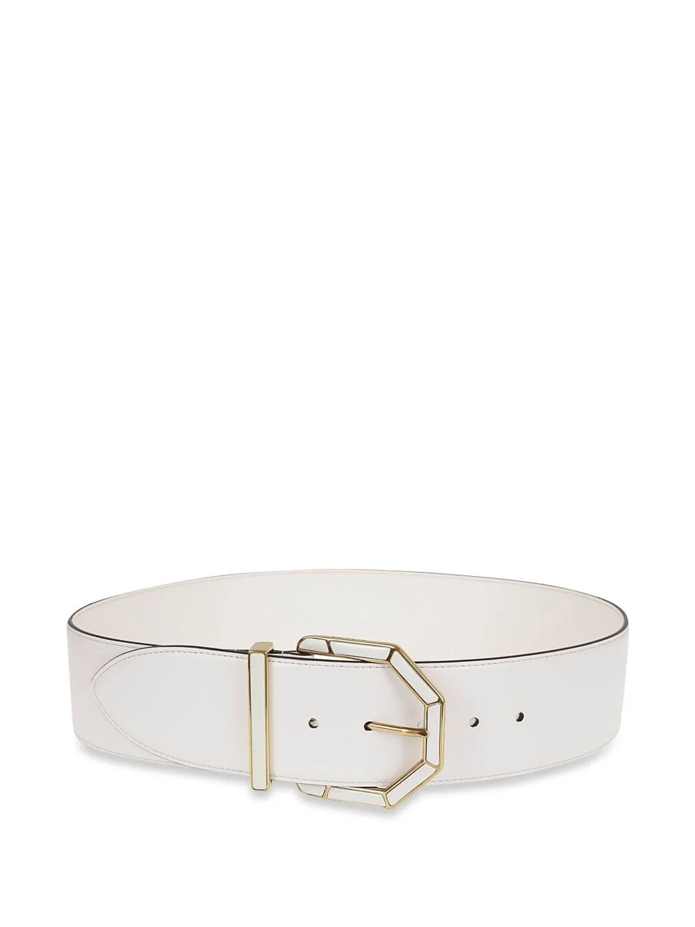 geometric-buckle belt Highlights - White - Gold-tone hardware - Adjustable fastening - Wide design - Geometric buckle detail - Contrast edging Made in Italy Composition Calf Leather 100% SIZE & FIT Measurement WIDTH 2.16 in(5.5 cm)