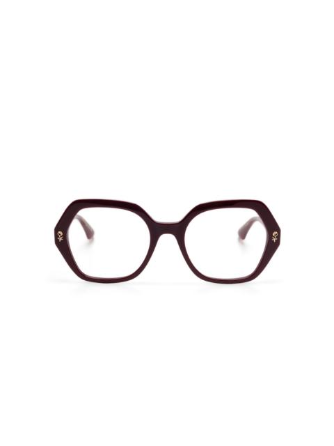 geometric-frame glasses Highlights - Brown - Geometric frame - Logo print to the side - Straight arms - All glasses from farfetch are sold as non-prescription frames. - These glasses come with a protective case. Made in Italy Composition Outer: Acetate 100% SIZE & FIT Measurement Arm Length 5.7 in(14.5 cm) Bridge Width 0.55 in(1.4 cm) Lens Diameter 1.92 in(4.9 cm) Total Width 5.31 in(13.5 cm)