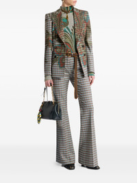 gingham flared trousers Highlights - Prussian blue - Hook and zip fly fastening - Belt loops - Pressed crease Made in Italy Composition Polyester 53%, Wool 43%, Elastane 4% Washing instructions Read Manufacturer Guidelines