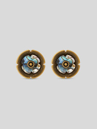 Vintage gold-finish brass earrings with maxi flower with mother-of-pearl centre. The accessory was presented at the Spring-Summer 25 Women's Runway Show. • Made in Italy PRODUCT DETAILS • Body: 100% brass • Appliques: 100% mother of pearl