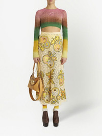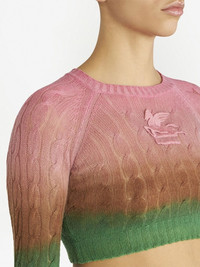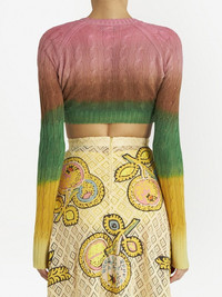 gradient cable-knit cropped jumper pink/brown/green wool blend cable knit gradient effect embroidered logo to the front crew neck long sleeves cropped Made in Italy Composition Wool 100%