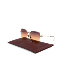 Pegaso-plaque sunglasses Highlights - Gold-tone - Signature pegaso plaque at the arm - Square frame - Gradient lenses - Uv-protective lenses - Logo lens decal - Straight arms - Curved tips - Nose pads - These glasses come with a protective case. Made in Italy Composition Acetate 100%, Metal 100% SIZE & FIT Measurement Arm Length 5.7 in(14.5 cm) Bridge Width 0.62 in(1.6 cm) Lens Diameter 2.36 in(6 cm)