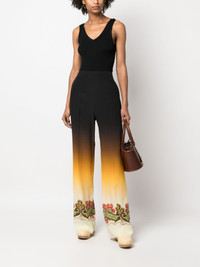 graphic-print straight-leg trousers Highlights - Black/multicolour - Silk - Graphic print to the front - Graphic print to the rear - Elasticated waistband - Straight leg Made in Italy Composition Silk 100% SIZE & FIT Model measurements Height 5 ft 11 in(1.8 m) Bust/Chest 31.49 in(80 cm) Hips 35.82 in(91 cm) Waist 24.8 in(63 cm) FittingInformation Designed for a straight-leg fit, these trousers allow for a close fit at the waist and an unrestricted, comfortable fit over the leg The partially elasticated waistband offers increased movement and comfort at the waist Made from a lightweight non-stretch fabric, this piece offers minimal elasticity when worn This piece fits true to size – take your usual size Washing instructions Dry Clean Only