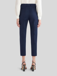 High-waisted stretch cotton trousers featuring a solid colour micro jacquard weave with a ton-sur-ton tie print pattern. PRODUCT DETAILS • 98% cotton, 1% polyamide, 1% elastane, • Slim fit • High waist • Hook and zip fastening • Ankle length • Made in Italy • The model is 178 cm/70 inches tall and wears size 40