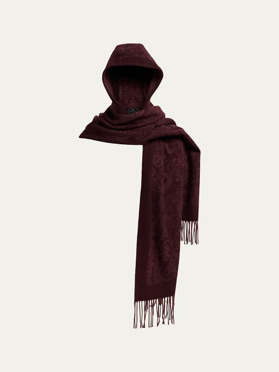 Etro scarf featuring a delicate paisley pattern and fringed edges Hooded May be styled multiple ways Wool Professional cleaning recommended Made in Italy