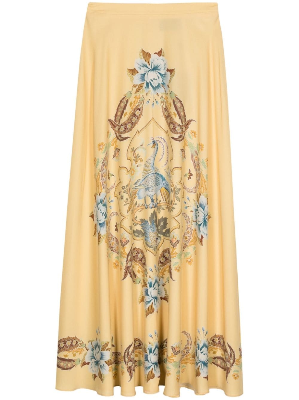 illustration-print silk skirt Highlights - Light yellow/multicolour - Silk - Illustration-style print - High-waisted - Concealed rear hook and zip fastening - Unlined - Straight hem - Maxi Made in Italy Composition Silk 100%