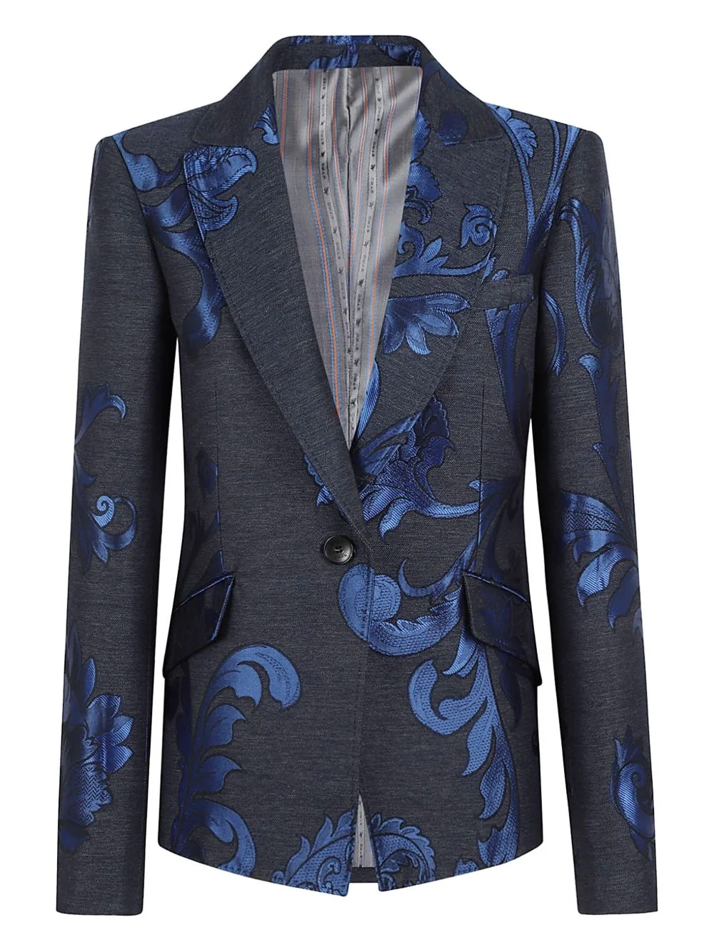 foral single-breasted blazer Highlights - Blue - Floral pattern - Single-breasted - Button fastening - Peak lapels - Flap pockets Made in Italy Composition Polyester 50%, Cotton 28%, Viscose 22% Washing instructions Read Manufacturer Guidelines