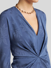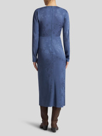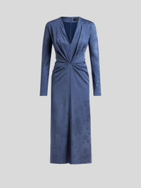 Midi dress with tonal floral jacquard motif. This model is complete with a knot at the waist which creates small gathers. • Regular fit • V-neck • Long sleeves • Rear zip closure • Made in Italy • The model is 5' 9½" (177 cm) tall and wears a size 40 PRODUCT DETAILS • 70% acetate, 30% viscose • Lining: 100% polyester