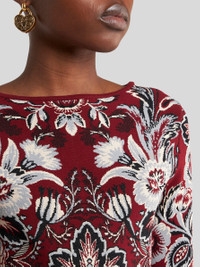 Midi dress with A-line skirt, made from soft knit jacquard fabric. This short-sleeved model stands out for its elegant, placed floral motif. • Regular fit • Straight neck • Short sleeves • Made in Italy • The model is 5' 9½" (177 cm) tall and wears a size 40 PRODUCT DETAILS • 77% viscose, 23% polyester