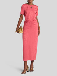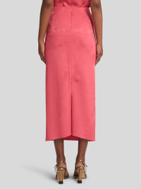Straight-cut midi skirt with tonal floral jacquard motif. This model is complete with a knot at the waist which creates small gathers. • Regular fit • Rear zip closure • Made in Italy • The model is 5' 9½" (177 cm) tall and wears a size 40 PRODUCT DETAILS • 70% acetate, 30% viscose • Lining: 100% polyester