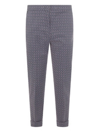 jacquard-pattern trousers Highlights - Blue - Jacquard pattern - Hook and zip closure - Side pockets - Cuffed hems Made in Italy Composition Polyester 44%, Cotton 33%, Polyamide 18%, Elastane 5% Washing instructions Read Manufacturer Guidelines