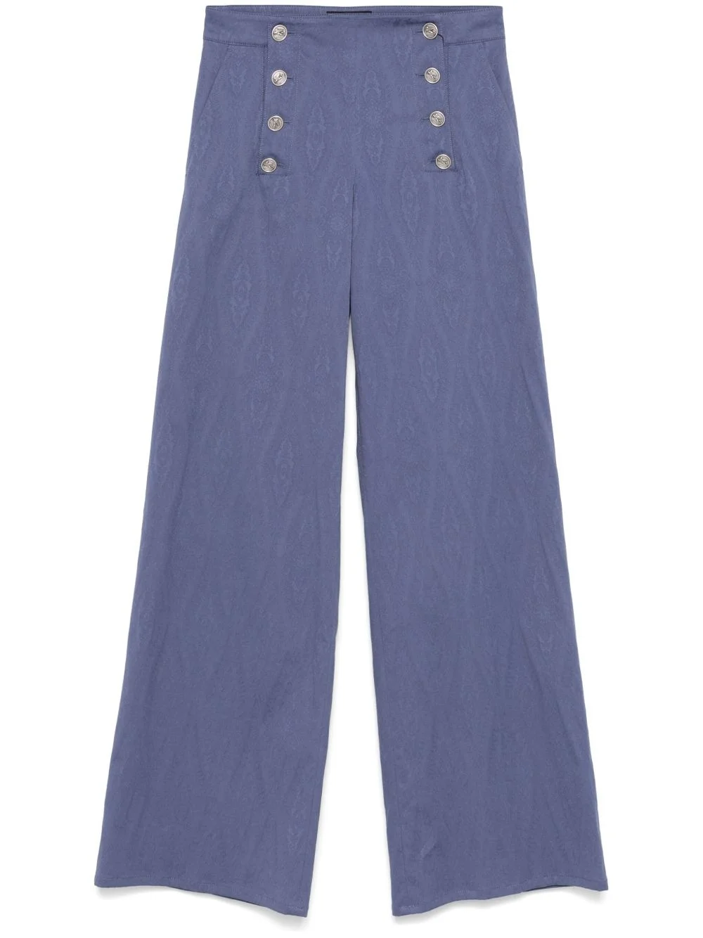 jacquard trousers Highlights - Cerulean blue - Front button fastening - Front hook and eye fastening - Two side slash pockets - Two rear patch pockets Imported Composition Cotton 98%, Elastane 2% SIZE & FIT Model measurements Height 5 ft 10 in(1.78 m) Bust/Chest 33.46 in(85 cm) Hips 36.22 in(92 cm) Waist 23.22 in(59 cm) FittingInformation Designed with a wide-leg cut, these trousers allow for a close fit at the waist and offer a loose and roomy fit over the leg Made from a midweight stretch fabric, this piece offers elasticity and flexibility when worn