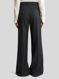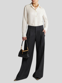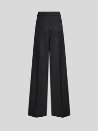 Wide-leg, menswear-inspired trousers in wool and cotton jacquard fabric with geometric, tone-on-tone tie-style motif all over. This high-waist model features pleats and pressed creases. • Loose fit • High waist • Hook and zip closure • Side pockets • Rear welt pockets • Made in Italy • The model is 5’10” (178 cm) tall and wears a size 40 (IT) PRODUCT DETAILS • 100% wool