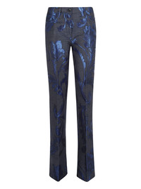 damask-print jeans Highlights - Dark blue - Damask print - Tonal stitching - Straight leg - Five pockets - Zip fly Made in Italy Composition Polyester 50%, Cotton 28%, Viscose 22% Washing instructions Read Manufacturer Guidelines