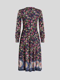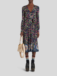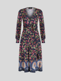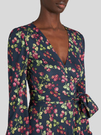 Midi jersey wrap dress featuring a belt at waist and decorated by a Berry print and ornamental border. PRODUCT DETAILS • 100% viscose • Regular fit with flared skirt • V neckline • Belt at waist • Made in Italy • The model is 178 cm / 70 inches tall and wears size 40