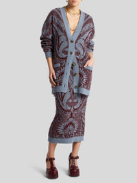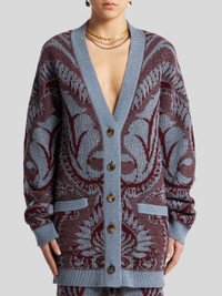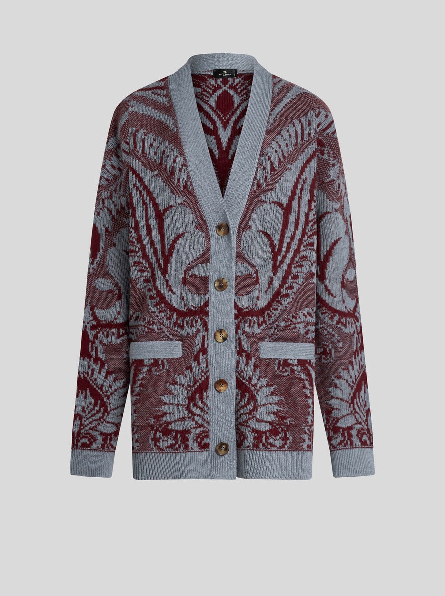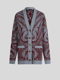Loose-fitting cardigan in knit wool jacquard fabric with Paisley motif. PRODUCT DETAILS • 100% wool