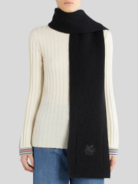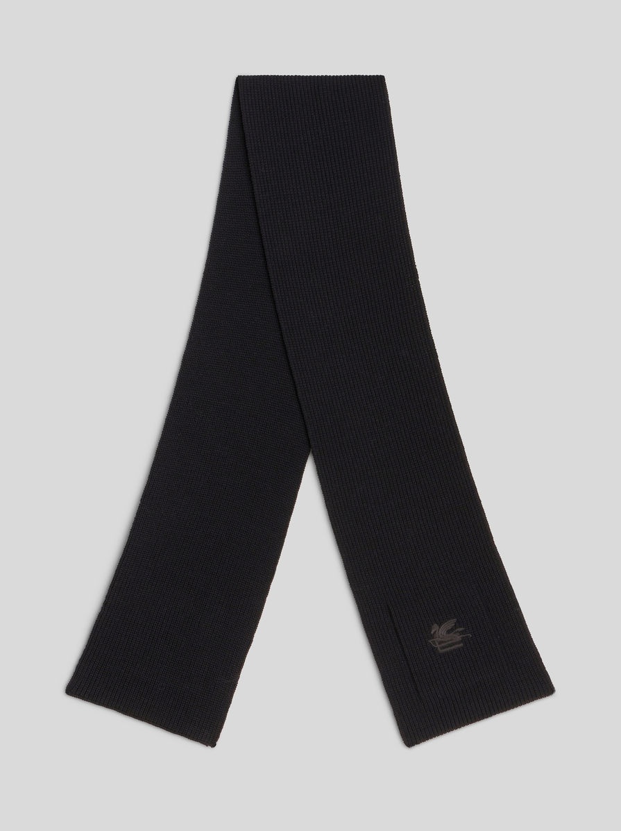 Knitted ribbed wool scarf embellished by logo with Pegaso. PRODUCT DETAILS • 100% wool • Made in Italy