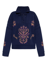 lace-up embroidered sweater