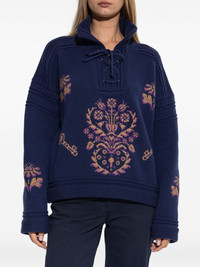 lace-up embroidered sweater Highlights - Blue - Lace-up neckline - Embroidered floral pattern - Ribbed trims - Wool material Made in Italy Composition Virgin Wool 100% Washing instructions Read Manufacturer Guidelines