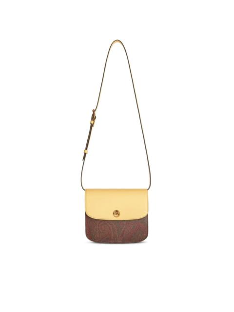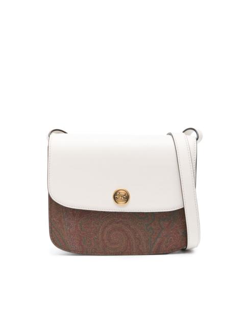 large Essential crossbody bag ETRO's Essential crossbody bag is adorned with a panelled design. It contrasts against a white calf leather construction, in a grained-finish paisley print. Highlights - White/multicolour - Calf leather - Paisley jacquard panels - Signature pegaso motif - Foldover top with magnetic fastening - Adjustable detachable shoulder strap - Partitioned compartment - Slip pocket to the rear - Debossed internal logo - Leather lining - This piece comes complete with a protective dust bag. Made in Italy Composition Outer: PVC 100%, Calf Leather 100%, Cotton 76%, Polyester 24% Lining: Lambskin 100% SIZE & FIT Model measurements Height 5 ft 10 in(1.79 m) Bust/Chest 32.67 in(83 cm) Hips 34.25 in(87 cm) Waist 24.4 in(62 cm) Measurement DEPTH 1.77 in(4.5 cm) HEIGHT 6.88 in(17.5 cm) STRAP 20.86 in(53 cm) WIDTH 8.07 in(20.5 cm)