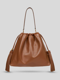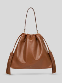 Large Kalispera sack bag in soft leather, featuring a braided drawstring closure culminating—on both ends—in elegant tassels with long fringes. Presented at the Spring/Summer 26 Runway Show, this model features a practical, detachable tonal handle for shoulder or hand carry. Completing the design are the contrasting inner lining, the small, golden-finish ETRO logo at the bottom on the front and a ball featuring the Pegaso logo and ETRO monogram alongside a tassel. • Dimensions (Width, Height): 14 x 14.8 x 3.9 inches (35.5 x 37.5 x 10 cm) • Braided drawstring closure • Removable handle • Internal slip pocket • Golden-finish metal elements • Made in Italy PRODUCT DETAILS • Exterior: lambskin • Interior: 100% polyester